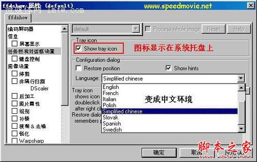 FFDShow可以称得上是全能的解码、编码器.最初FFDShow只是mpeg视频解码器,不过现在他能做到的远不止于此.它能够解码的视频格式已经远远超出了mepg4的范围,包括indeo video,WMV,mpeg2等等.同时,它也提供了丰富的加工处理选项,可以锐化画面,调节画面的亮度等等。