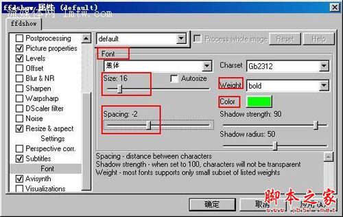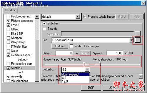 目前版本的ffdshow里关于字幕的设置有轻微的改变,请注意我图中的设置