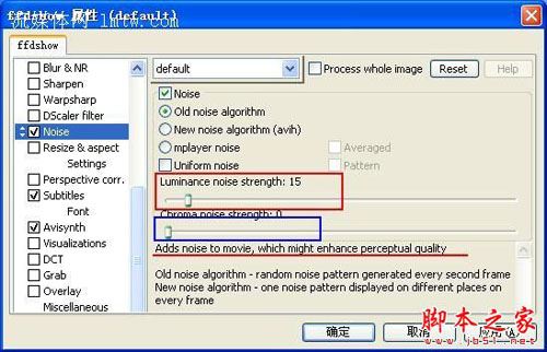 我目前是利用这两个滤镜来压制一些早期的低码率的avi(mpge4)asf格式的媒体,增加噪音后可以在一定程度上掩饰马赛克,一般将亮度噪音控制在6-15左右,将色彩噪音取消即可,调到0