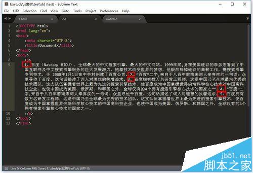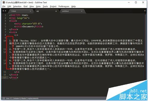 1、打开你需要的文件,如图,小编想替换文件中数字序号,让其分段显示;