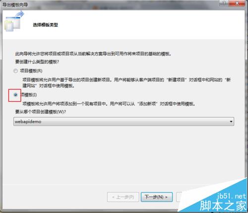 2、在模板向导中选择“项模板”