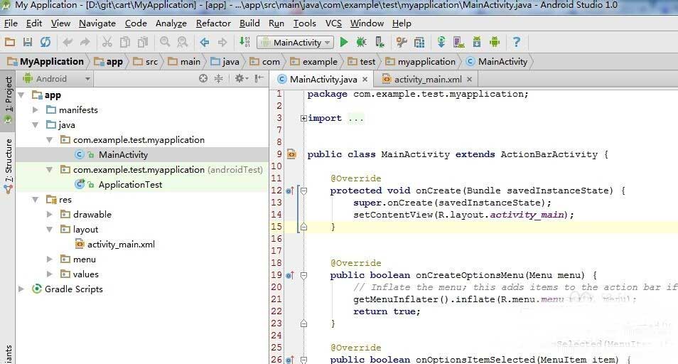 1、在android studio中新建android默认的应用app。