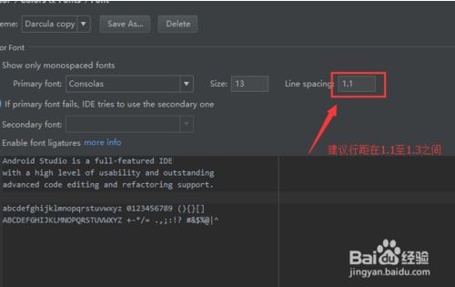 5.然后在Line Spaceing 的框中进行修改,小编建议行距在“1.1-1.3”之间最好,在这里小编为大家介绍一下如何修改炫酷的黑色主题的设置,有兴趣的可以查看一下经验