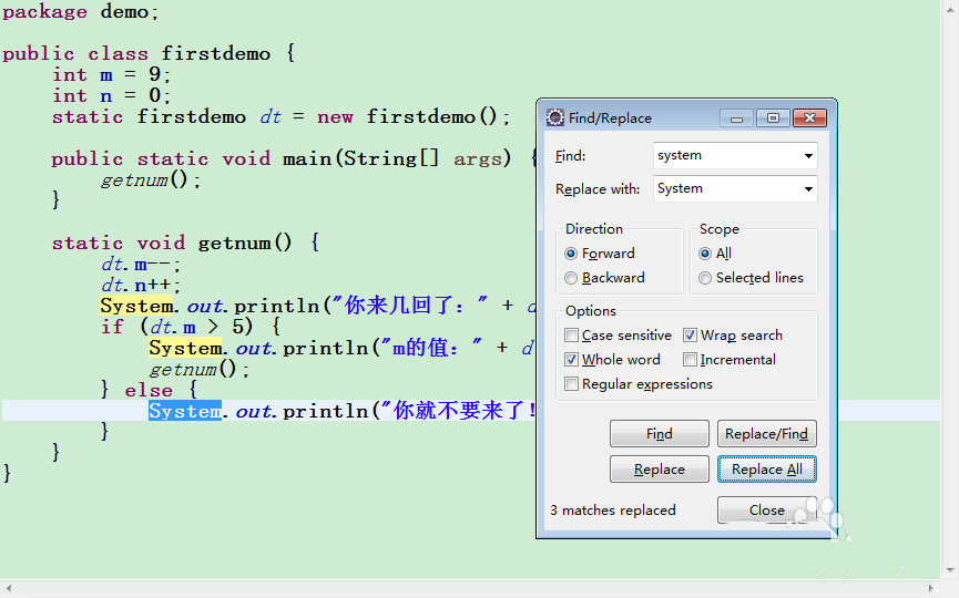 替换eclipse中 Java文件中某一个单词为另一个单词(为了方便快速对文件的修改)。
