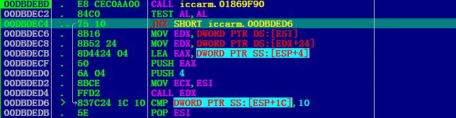 修改以上两处后发现iccarm.exe可以成功运行,且不在提示未授权,使用工具修改iccarm.exe保存