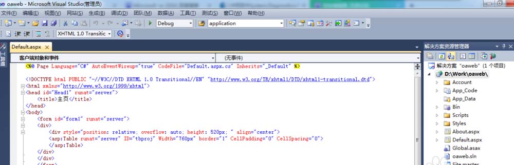 1、正常打开Microsoft Visual Studio 2010工具,加载一个既有项目或者新建一个项目都可以。界面如下截图所示。