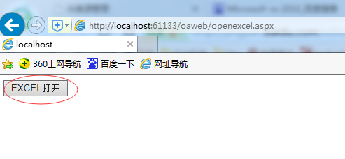 7、这时候已经完成代码的编写了,直接运行项目 ,在IE窗口中点击按钮,就可以看到直接打开的excel文件了。