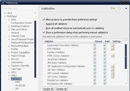 一、取消Myeclipse的自动文件验证(卡傻的原因)