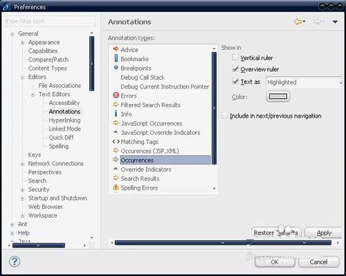 1、首先进入Window -> Perferences -> General - > Editors -> TextEditors -> Annotations。