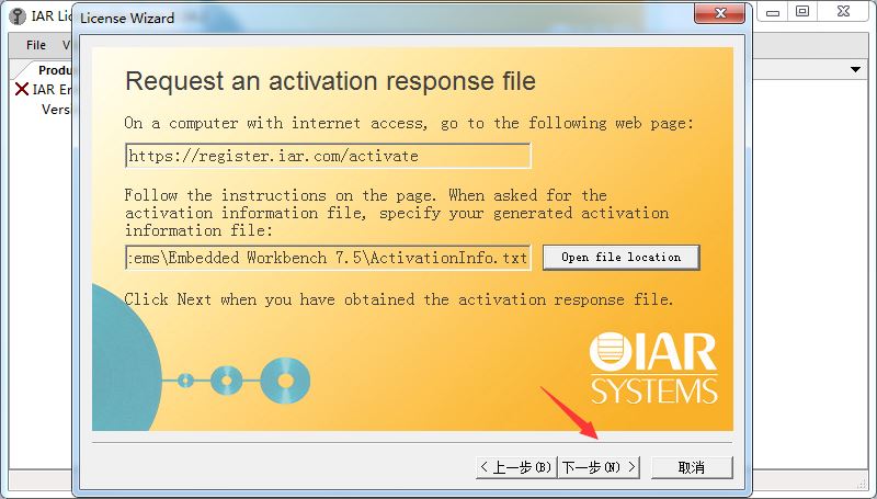 11.回到软件注册界面,打开上一步生成的“ActivationResponse.txt”的文件,点击“下一步”