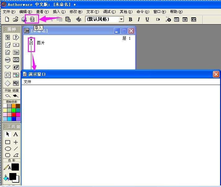 6、图片就导入到Authorware中了;