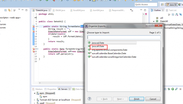 方法二:直接在要引入的类上右击,在”source“中选择”Organize import“引入也可以完成。