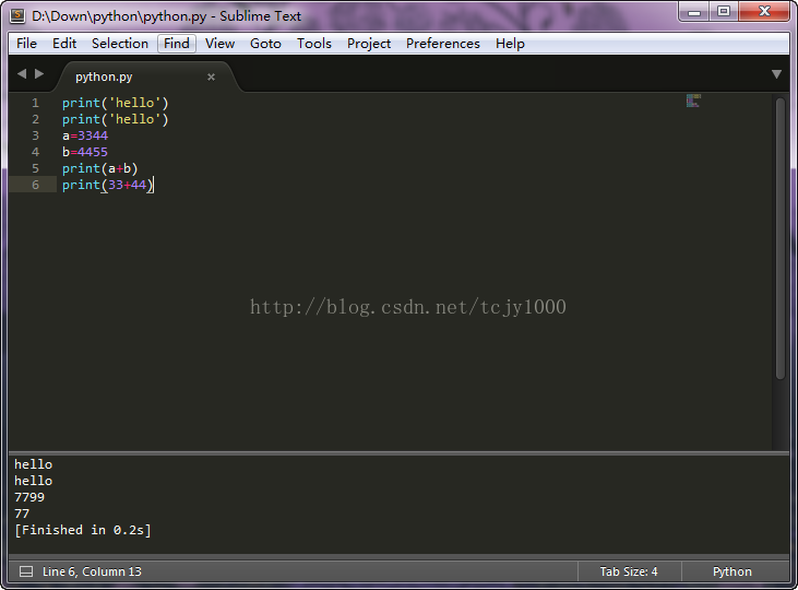 因为我只是简单的学习Python,还不能开发大型的应用程序,因为,越简单实用越好。Sublime的高亮环境与python代码补齐功能还是不错的。因此选用一下。