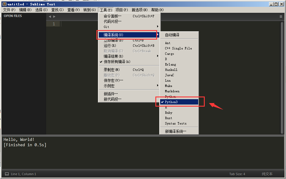 [Tools]-->[Build System]-->[New Build System...],然后发现新建了一个配置文件。