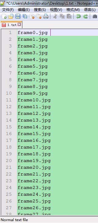 2、打开的文档如图,里面是一列有规律的图像文件名,我看了下共657行