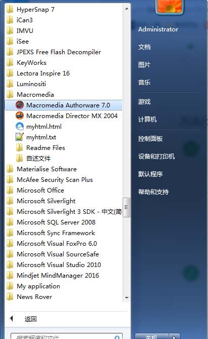 1、点击WIN按钮,在所有程序中选择Authorware,点击运行,打开应用程序。