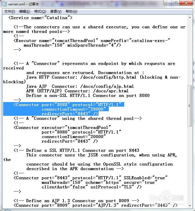 把8080改成8088,保存并关闭