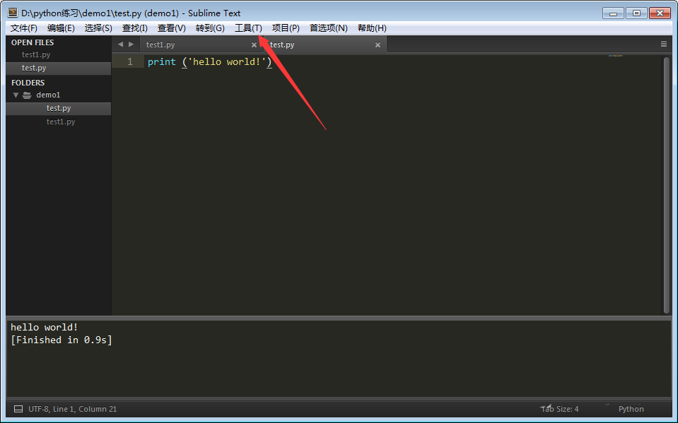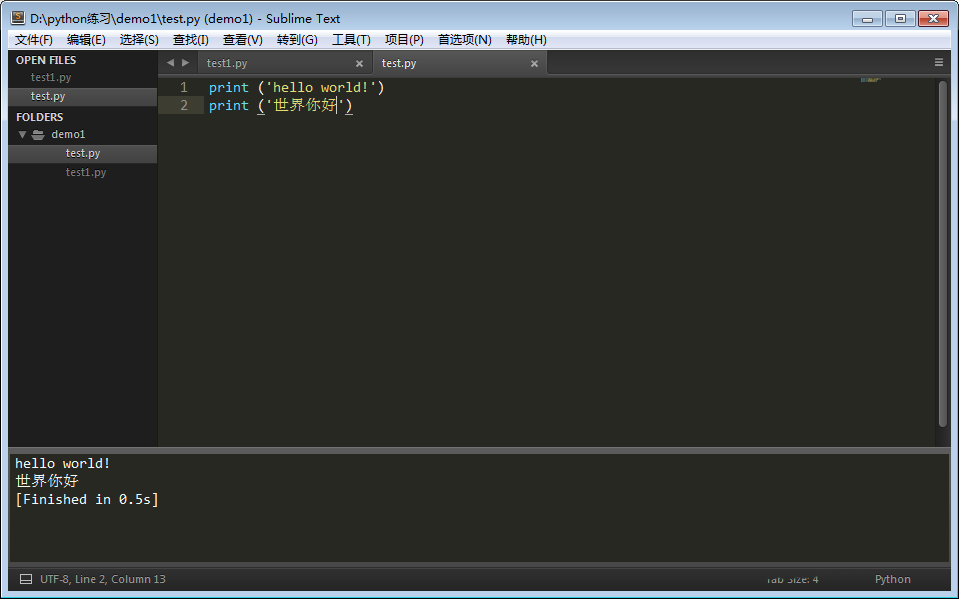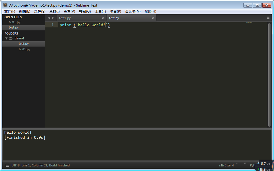 3、用sublime打开test.py