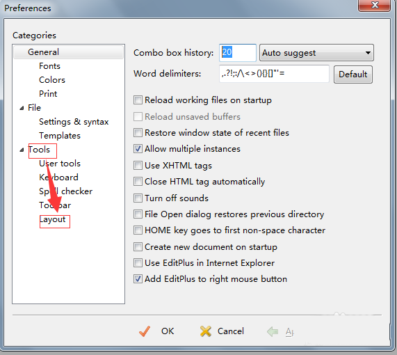 3、然后点击弹出的窗口下的Tools下的Layout选项。