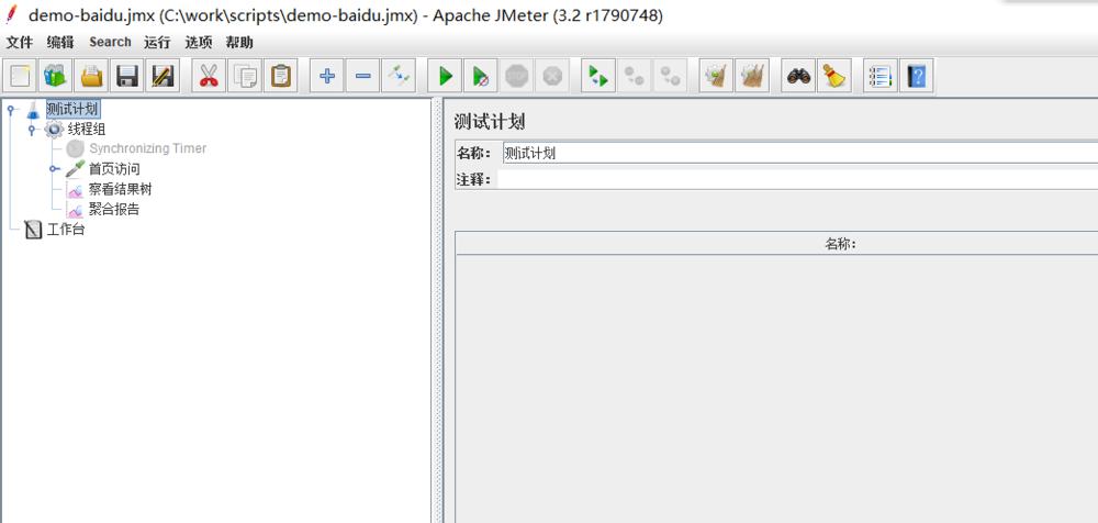 1、打开jmeter图形界面工具,打开之前的脚本。