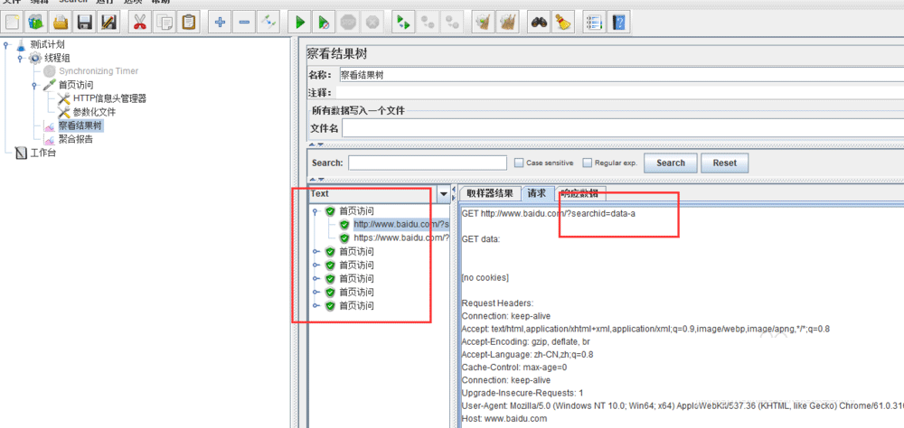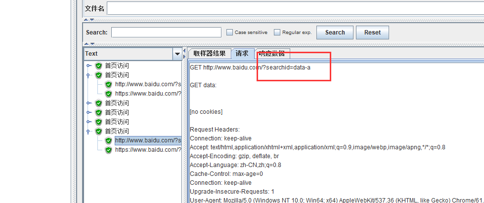 注:在parameter中加入一些多余的参数没有问题,故在访问百度的请求后面随意加了一个参数。