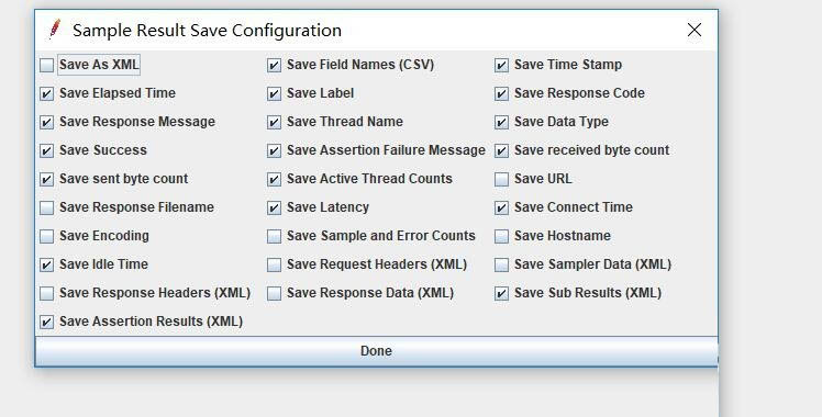 8、同样在聚合报告中,点击 configure,根据需求设置自己想要保留的信息。