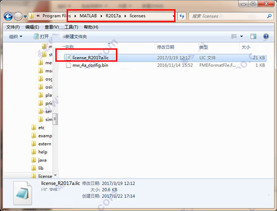 将:“license_R2017b.lic”复制到\MATLAB\R2017b\licenses\目录下