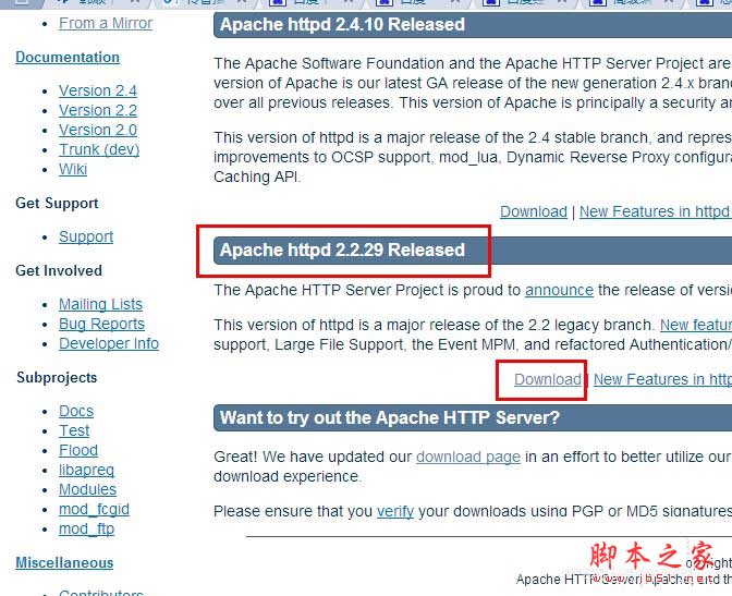 1、进入apache服务器官网http://httpd.apache.org/,这里我们以下载稳定版的