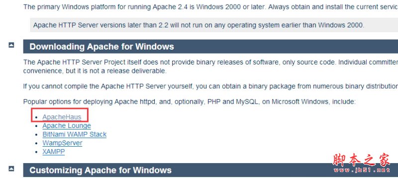 其中后两个是有名的wamp以及xampp集成环境,如果只想下载apache可以选择前三个网站,这里我们第一个ApacheHaus为例。