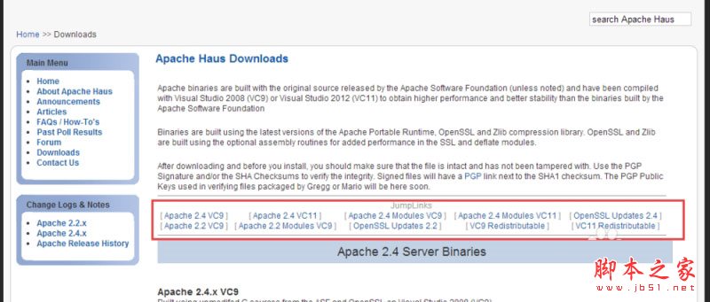 在ApacheHaus网站的最底部提供了相应的Visual Studio Redistributable Packages下载链接