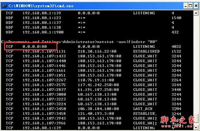 如果看到如图的结果,说明80端口已被使用,需要先关闭相关软件,或者修改apache默认的监听端口