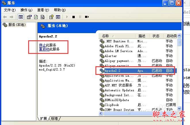 打开后如果在服务列表能够看到apache字样,说明,服务安装成功,可以直接点击左边的启动按钮来启动服务