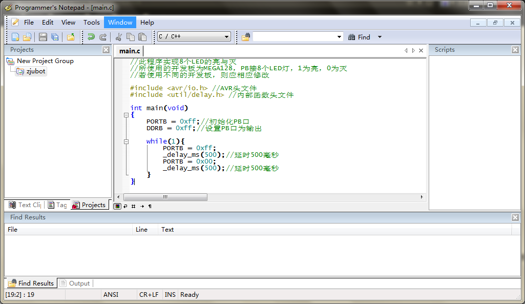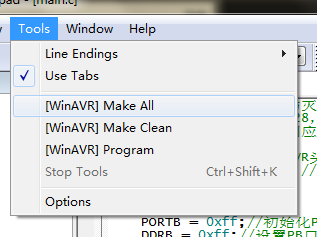 回到Programmer's Notepad,确保代码已经保存。使用菜单栏的Tools > Make all [Win AVR],编译程序。