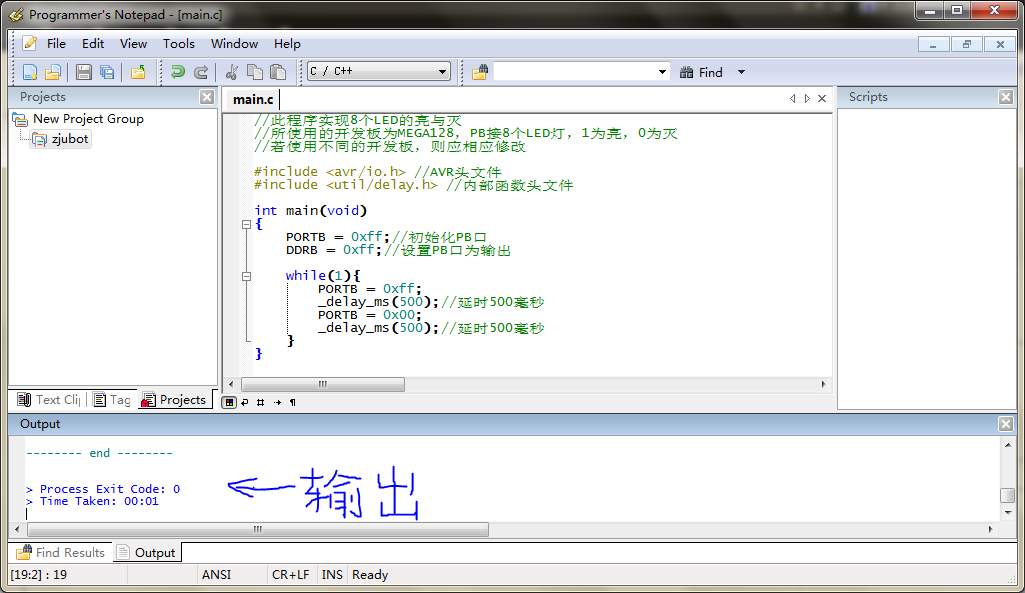 现在,一个AVR项目就已经完成了。