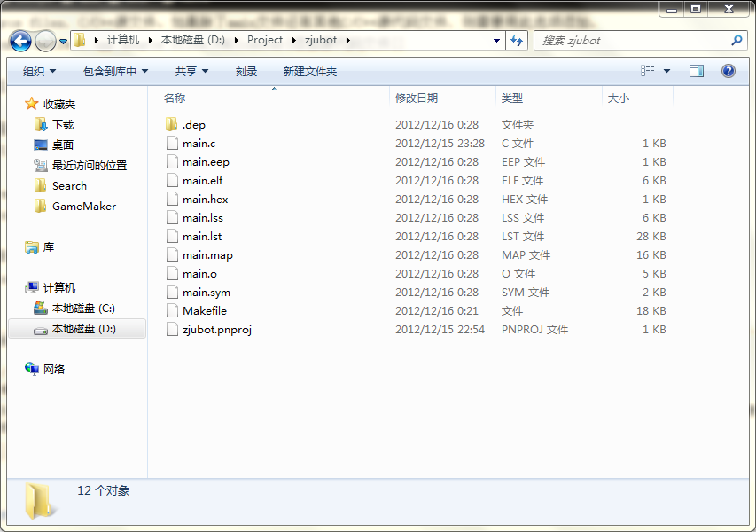现在我们转到项目所在的文件夹,就能看到WinAVR编译输出的文件了。