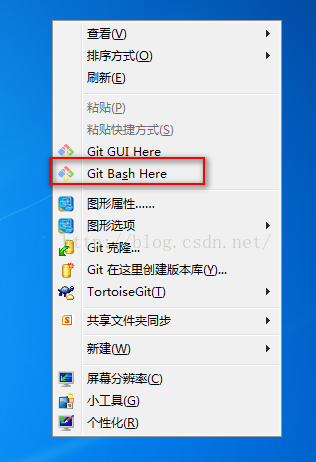 2、右键鼠标,选中 “git Bash here”,当然你也可以在windows的 “开始”--->“所以程序”,或者安装目录打开它