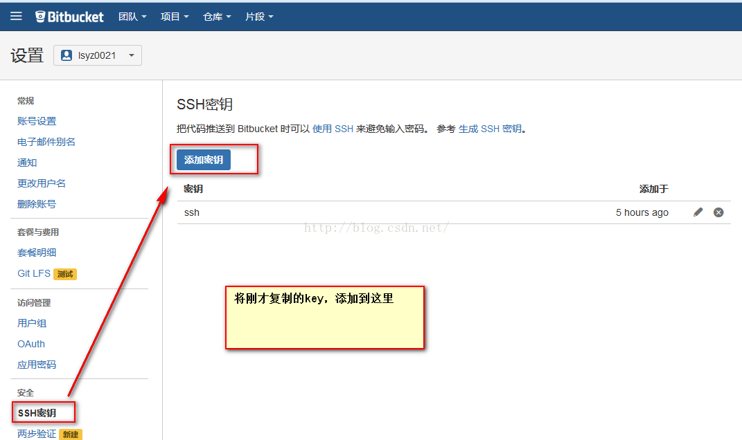 这是bitbucket的添加key,点击右上方的头像,选择设置,然后