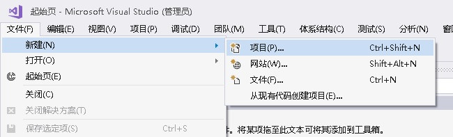 1、打开visual studio2017软件,进入软件主界面的菜单栏。在菜单栏中选择“文件”命令,可以看到“新建”、“项目”来新建一个项目