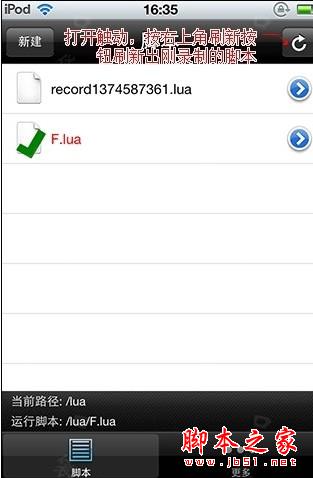 3、然后我们打开触动精灵,点击右上角的刷新按钮,就会刷新出你刚才录制的脚本;