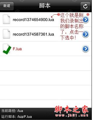 4、如下图,注意刚录制的脚本,只要点击一下就可以选中了;