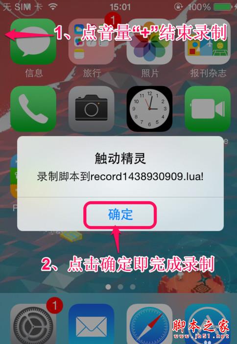2、看下图,等你 感觉录制好了后,再按一下【音量+】,就可以结束录制,并且会提示你录制脚本的放置目录