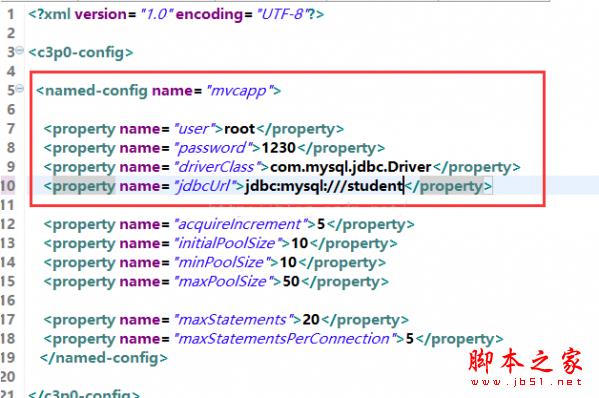 5、修改连接数据库配置文件,其路径在/src/c3p0-config.xml