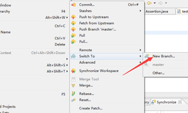 4、选择了switch to的选项,在下一级菜单进行选择为new branch的选项。