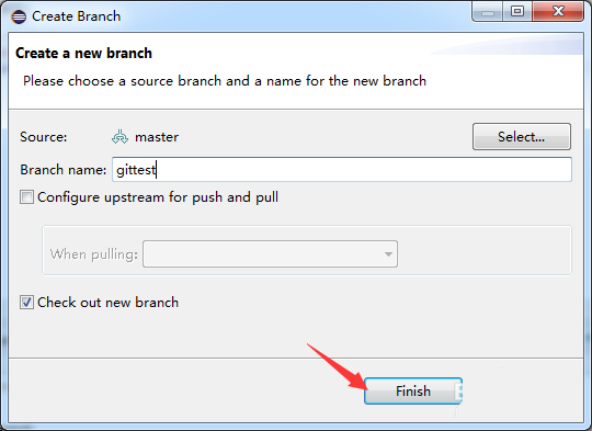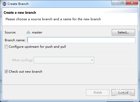 6、分支名称输入完成之后,进行点击finish即可。