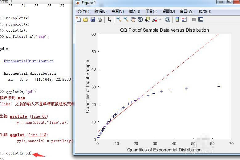 3、关于做一个自己指定的的概率分布函数图,可通过fitdist函数完成,举一个例子,如图