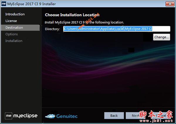 3.选择安装位置,默认路径为“C:\Users\Administrator\AppData\Local\MyEclipse 2017 CI”点击“browse”可更改目录,但是建议不要更改才好方便等下的破解操作