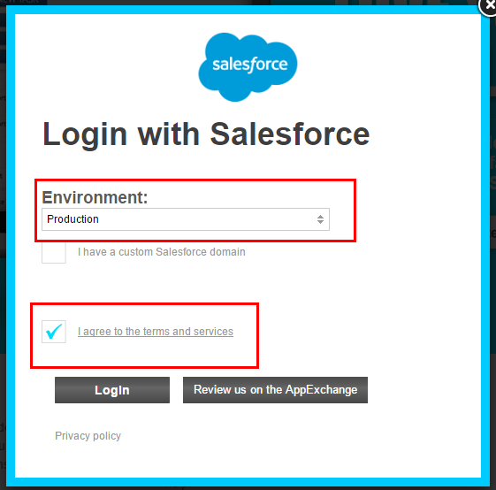 3、不是在salesforce中安装,而是跳到一个新的页面,使用salesforce账号登陆,选择环境,勾选同意