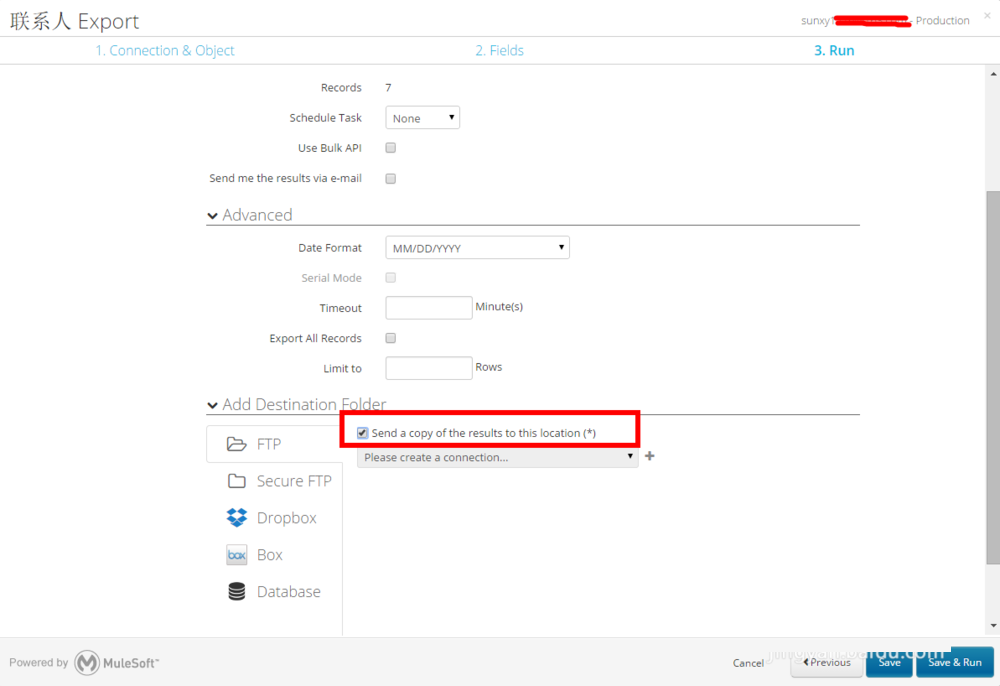 7、这里可以选择我们需要导出的属性,全选吧,再下一步,显示导出的记录信息。两个高级,一个可以定义导出记录中日期格式、记录数和超时时长。另一个可以将导出文件备份到指定的目标服务器上。