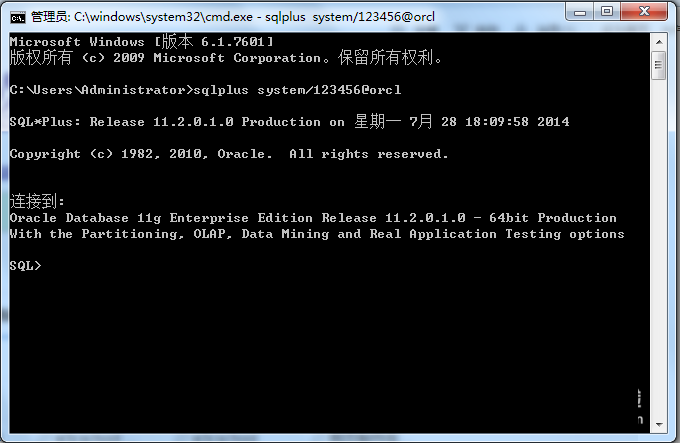 首先,要切换回命令窗口,不要再在sql>下运行,然后输入命令: