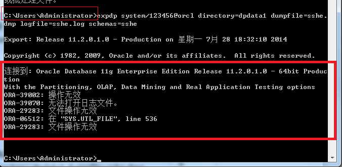 5、上面报了一个错ORA-39002:操作无效